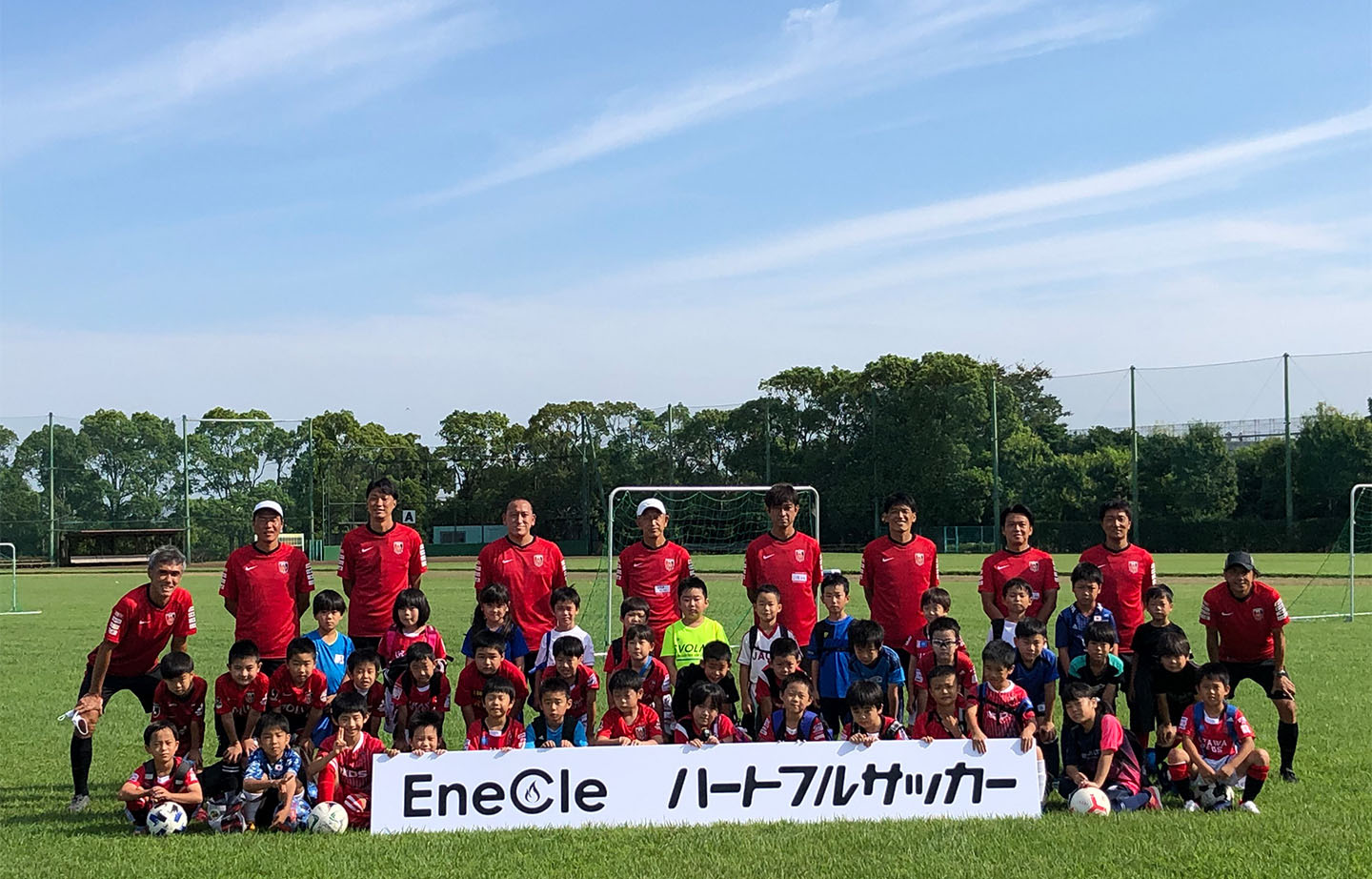 「エネクルハートフルサッカー」は毎年開催されており、浦和レッズのOB選手が多く在籍するハートフルクラブコーチによるサッカー教室に今年は小学生168人が元気に参加しました。